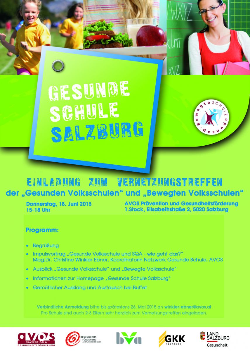 Alle "Gesunden Volksschulen" und "Bewegten Volksschulen" sind am 18. Juni 2015 von 15.00 - 18.00 Uhr herzlich zum Vernetzungstreffen eingeladen. Weitere Details entnehmen Sie bitte der Einladung!