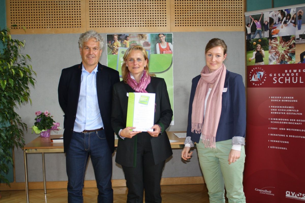Mit einem Gütesiegel wurden am Dienstag, 4. Juni 2013 zum ersten Mal 13 Salzburger Volksschulen offiziell zur „Gesunden Schule“ ernannt. Mag. Robert Tschaut, Fachinspektor für Bewegung und Sport des Landesschulrates für Salzburg, überreichte die Urkunden im Rahmen einer Feier in der Volksschule Pfarrwerfen.