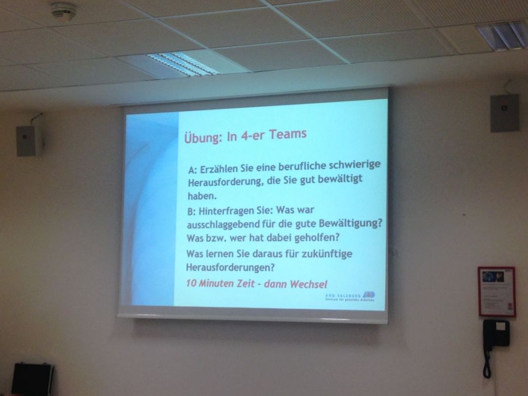Am Mittwoch, den 4. November 2015, trafen sich im Heffterhof Salzburg rund 110 Lehrerinnen und Lehrer aller Schultypen im Bundesland Salzburg, um etwas für sich und ihre Gesundheit zu tun. Die 10. Tagung der GesundheitsreferentInnen stand ganz im Zeichen der LehrerInnengesundheit und eröffnete Einblicke und Wege, seine persönlichen Ressourcen zu stärken und sein Arbeitsumfeld gesundheitsfördernder zu gestalten.