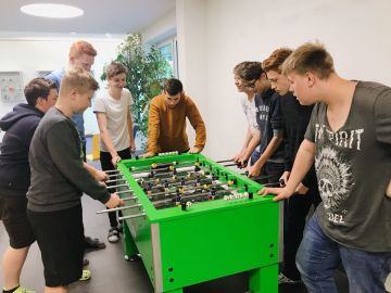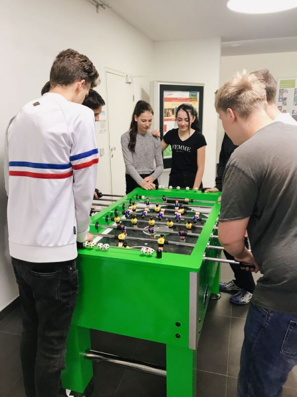 Mit der Hilfe von AVOS haben wir es geschafft, unsere Pausenräumlichkeiten in einer Zone der Begegnung und Bewegung umzuwandeln. Die Schülerinnen und Schüler haben große Freude daran, Tischtennis, Slackline oder Tischfußball zu spielen, oder es sich auch einfach mal nur in den Sitzsäcken gemütlich zu machen. Im nächsten Beitrag zeigen wir, wie unsere bewegte Pause im Freien aussieht.