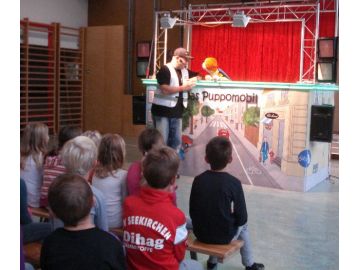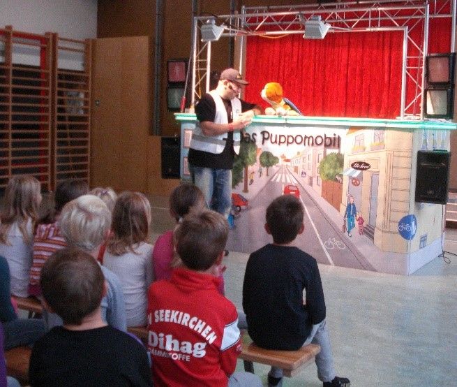 Eine mobile Verkehrserziehungspuppenbühne vermittelte den Kindern der 1. und 2. Klasse das richtige