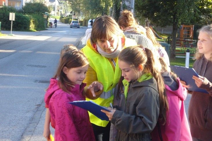Verkehrssicherheit im Schulumfeld durch mehr FußgängerInnen und weniger Autos am Schulweg.